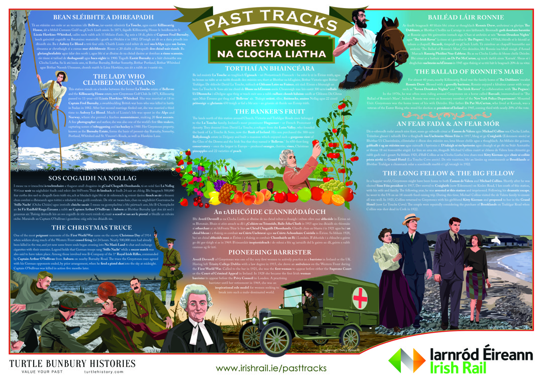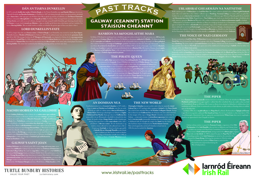 “It is delightful to see history being brought to life in this accessible way and congrats to Irish Rail on the initiative. There are many places churches, libraries, civic buildings, theatres and so on where we want to know the back story and how it came to there. Let’s hope other organisations take up on Turtle’s Histories!” – David Caldwell, Wo Media.