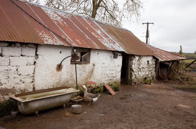 The cattle have plenty of company. Adjacent to Baby’s house is a small line of scraggly damson trees, where with two peaceable she-goats munch grass. (‘She’s Kitty and she’s Kitty too’, says Baby). Three muddy ducks, two drakes, a goose, a proud rooster and a seemingly tame flock of pigeons promenade along the white-washed walls. A cheeky Robin has set up home on one of the cottage windowsills. The goose is destined for the Christmas table but the others are there for the eggs. Her guinea fowl were lately decimated by a wicked fox but her chickens are securely compounded between an oil tanker and two dilapidated vehicles set upon a grassy knoll above the house, a VW Caravelle and a Renault Trafic.