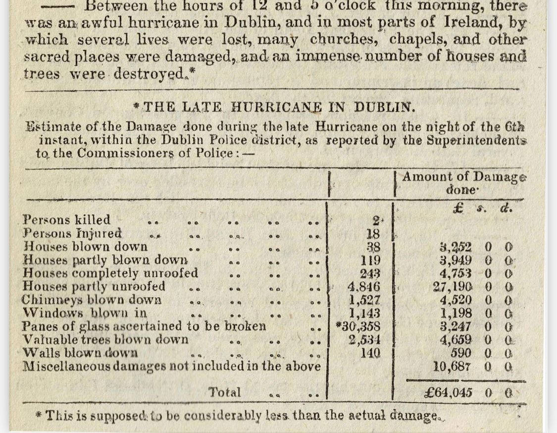 Report from the archives of the Dublin Metropolitan Police following the night of the Big Wind, January 6th, 1839. (Jim Herlihy)