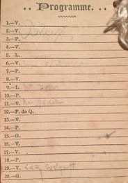 Ever since I found the dance card in the attic at Lisnavagh, I’ve had a hunch that this belonged to twenty-year-old Billy and sure enough, a perusal of the Kildare Observer and Eastern Counties Advertiser of 29 January 1898 confirms he was there. There are six names pencilled on the back and it is difficult not to read into the largest name ‘Amy’ which fills the spot for the No. 2 dance (Valse: Marguerite), and also the 5th (Lancers: The Geisha). It’s tricky to read the other names but it looks like he had Mrs Mitchell for the 11th and Lady Evelyn HH (Hely Hutchinson) for the 19th and penultimate dance.