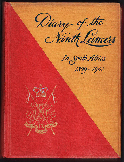 [25] The 9th Lancers were stationed in Muttra, India, in September 1899 when they were warned for service in S Africa where war with the Boers was imminent. The Regiment sailed from Bombay on 24/25 September in three ships, one of which encountered a fierce storm between Durban and Cape Town resulting in 83 horses and nine mules being killed or washed overboard. This storm is vividly described, the carnage among the animals on deck was appalling as they were flung about among the wreckage of the wooden stables. The contents are set out in diary form with dates in the margin against the narrative which covers all matters affecting the Regiment – actions, casualties, reinforcements, extracts from Army, divisional etc orders and other correspondence, strength states, awards, all are duly noted. The first entry is for 8 Sep 1899 when the Regiment was ordered to mobilize and prepare for active service and the final entry is for 9 April 1902 when the Regiment arrived back in India after some two and a half years on active service. It saw plenty of action – at Kimberley, in the Transvaal and Orange Free State and River Colony; clasps to the Queen’s South Africa Medal gained by the Regiment as a whole were: Belmont, Modder River, Relief of Kimberley, Paardeberg, Johannesburg, Diamond Hill and Witterbergen. Casualty details are given at the end of the book, 225 in all of whom 45 died in action and 26 of disease or from accident. There is also a complete list of officers who served with the Regiment during the campaign, a list Awards and Mentions in Despatches, and finally a record of distances covered – a total of 8,530 miles.