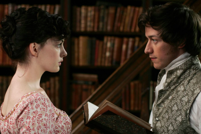 A still from the 2007 film ‘Becoming Jane’ in which Tom Lefroy is played by James McAvoy and Jane Austen by Anne Hathaway. The film is based on a fictitious account of a romantic relationship between the two.