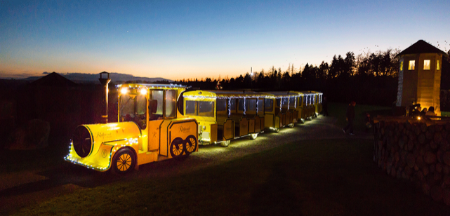 December 2016. In the darkening, starlit night, we advance through small clouds of freezing fog and espy the train twinkling patiently in the near distance. Leading us forward are two elves, clad head to toe in evergreen and heart red robes, sturdy boots and conical hats. The bright yellow train is pointed westwards at the Enchanted Forest wherein Santa Claus himself is presently residing.